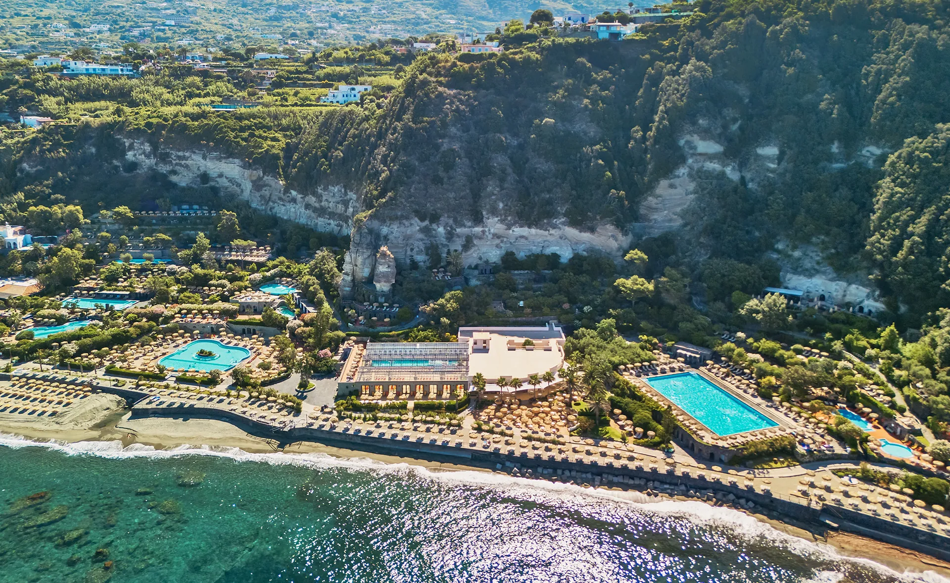 Situato nella splendida Baia di Citara, questo parco termale è uno dei più grandi e rinomati dell’isola. Offre oltre 20 piscine termali, tra cui tre con acqua di mare, una sauna naturale e una spiaggia privata. È ideale per chi cerca un’esperienza completa di benessere.